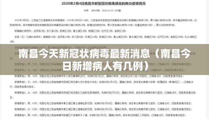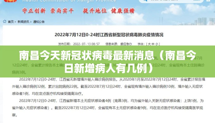 希望本篇文章《南昌今天新冠状病毒最新消息(南昌今日新增病人有几例)》能对你有所帮助!